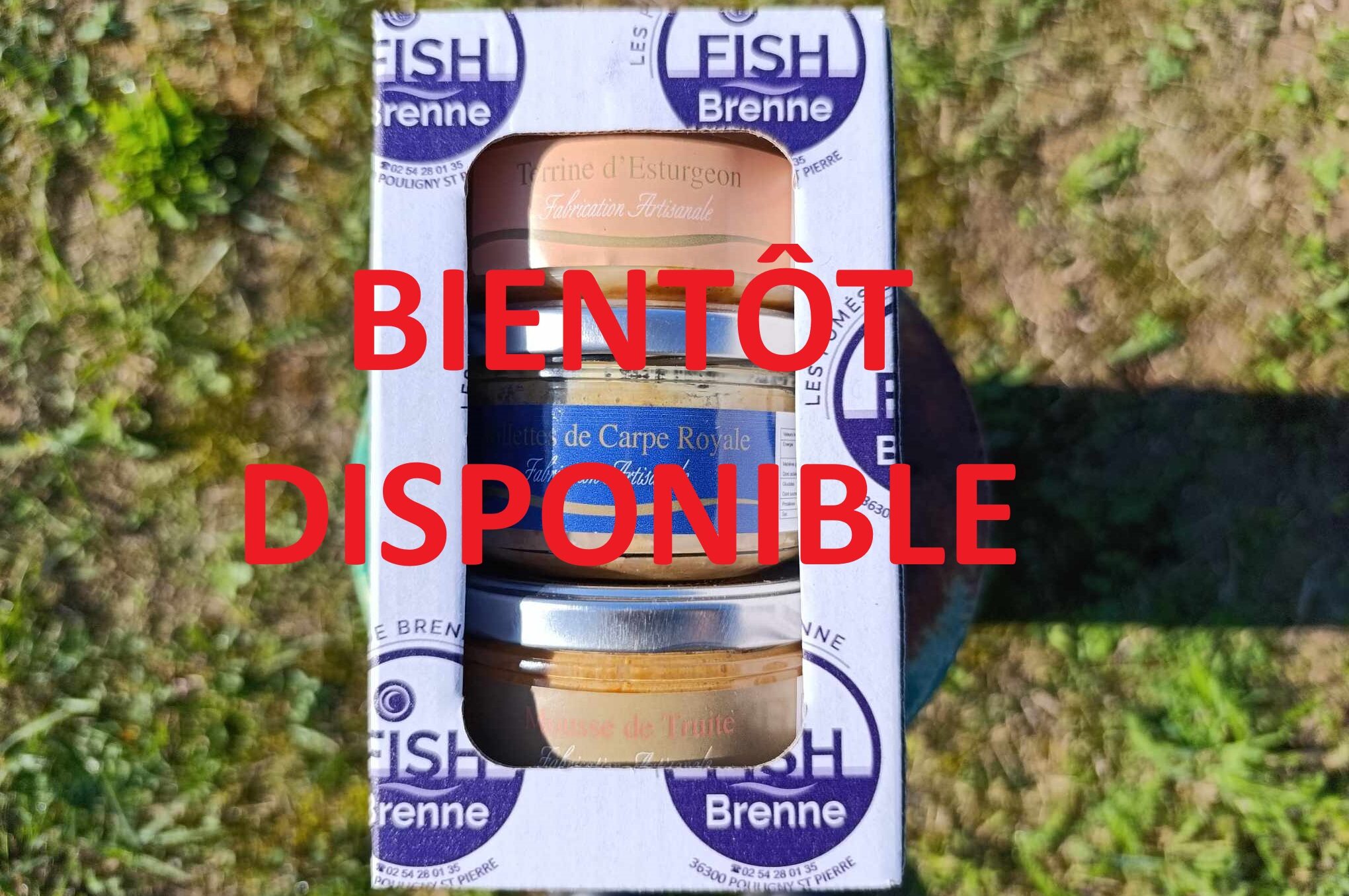 Le lot n°1 comprend une mousse de truite, une rillettes de carpe et une terrine d’esturgeon.